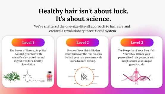 AI-Powered Personalization: Our proprietary AI algorithm analyzes your unique profile, including your health history, lifestyle, genetic information, and Ayurvedic constitution. This intelligent system then generates a personalized hair care regimen, recommending the most effective combination of supplements and topicals to address your specific needs.